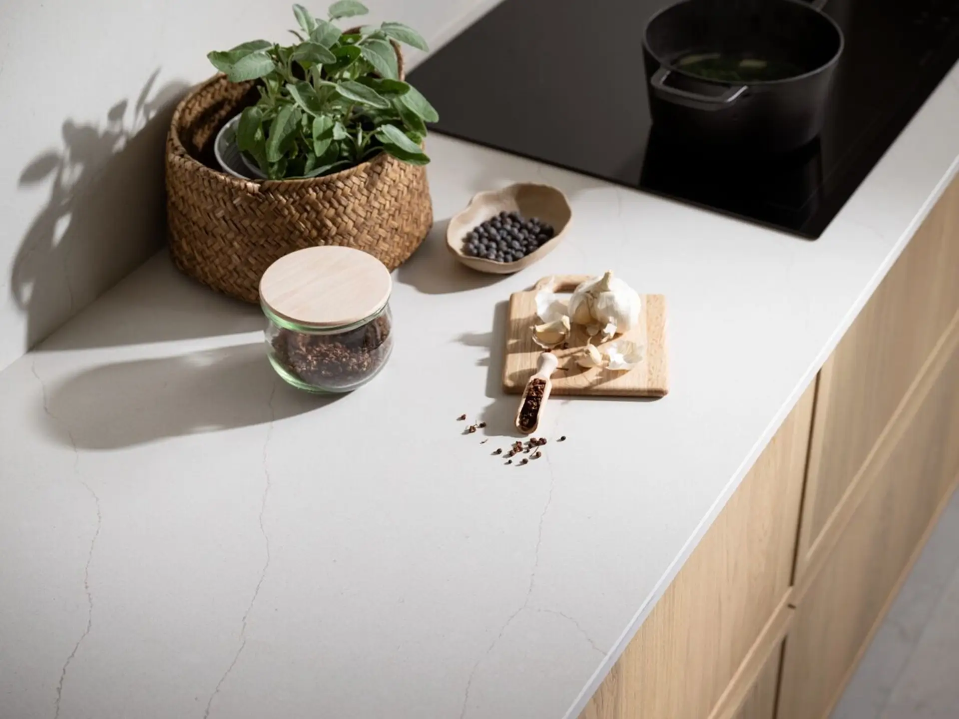 Encimera de cuarzo reciclado, de fácil mantenimiento y ultrarresistente.